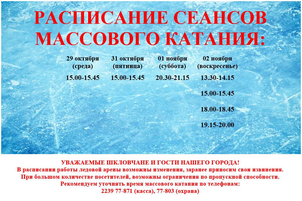 Расписание сеансов массового катания 29 сентября — 5 октября