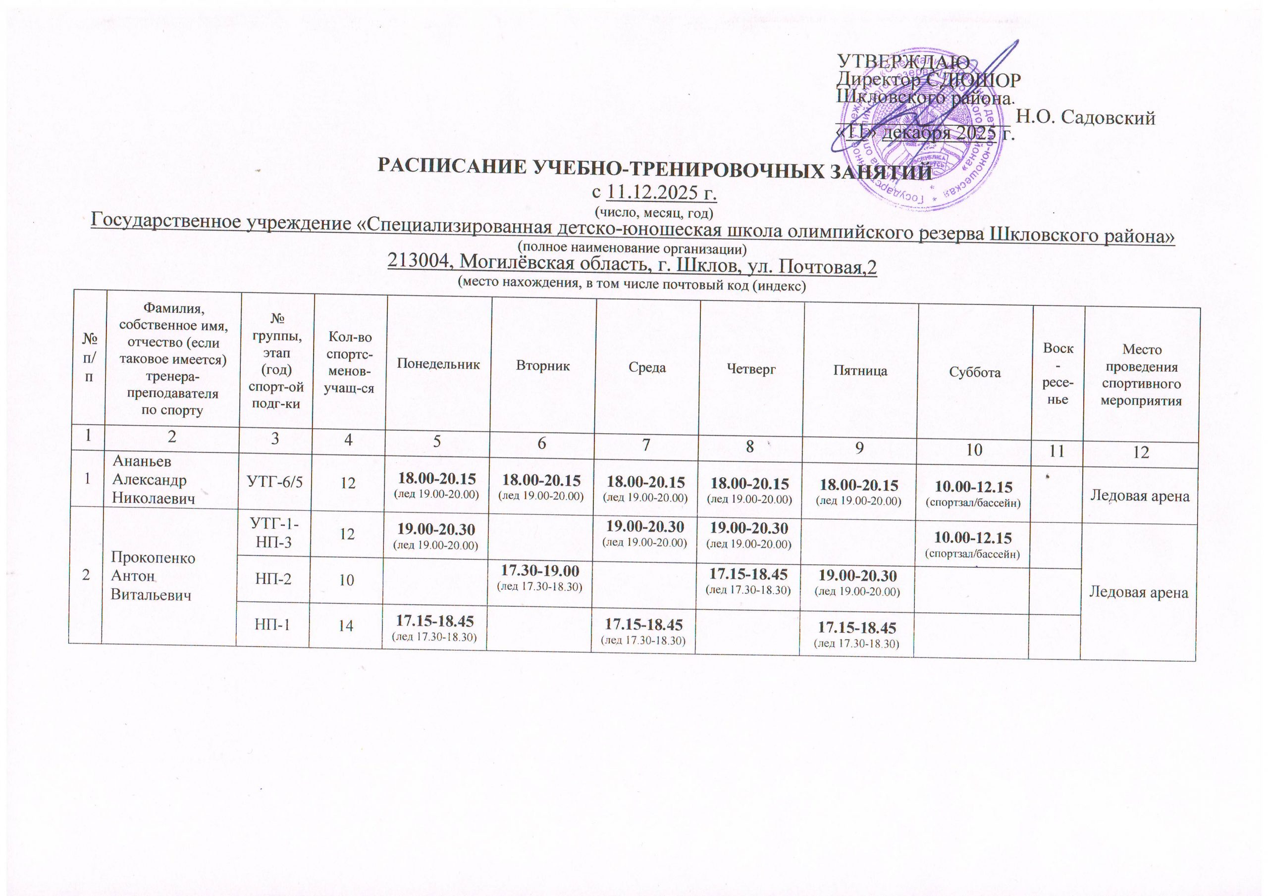 Расписание